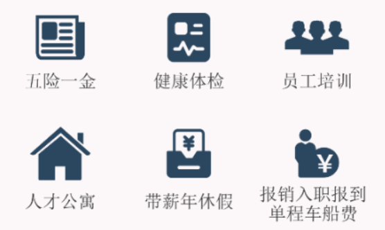 享受“五险一金”(养老保险、医疗保险、失业保险、工伤保险、生育保险、住房公积金),其中住房公积金企业缴费比例12%。享受国家规定各类带薪休假、免费健康体检、系统化的职业培训、丰富多彩的文体活动,报销入职报到单程车船费,提供设施完善、拎包入住的人才公寓及全方位后勤保障。