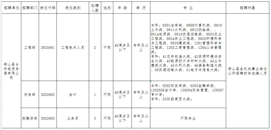 砀山县乡村投资发展有限公司为砀山县人民政府(国资委)出资设立的国有独资公司。为深化国有企业市场改革,充实公司人才队伍建设,因公司发展与工作需要,现面向砀山县各机关事业单位公开招聘的非在编人员,公开选聘工作人员若干名。现将有关事项公告如下: