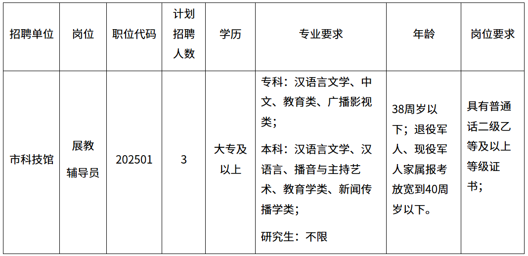 因池州科学技术馆事业发展的需要,经研究,面向社会公开招聘编外聘用人员3名。